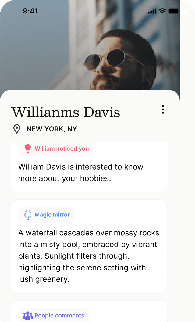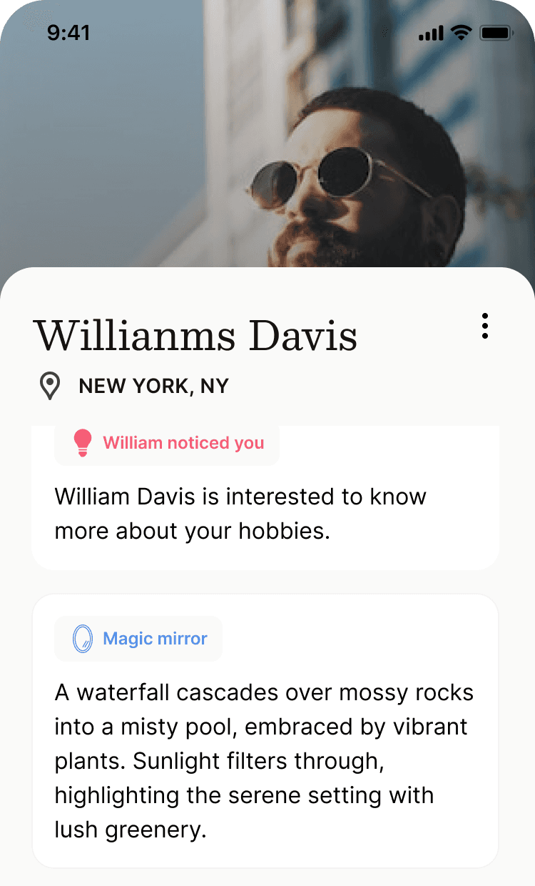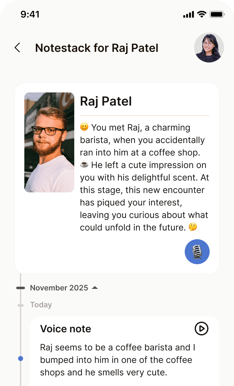 Every interaction adds understanding. Relationship discovery becomes thoughtful, informed, and human.